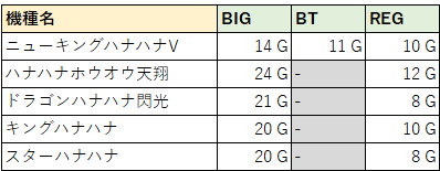 - 早見表(ボーナスゲーム数)