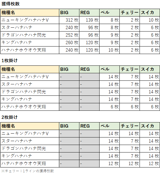 6号機ハナハナ全機種のリール配列・配当表を一覧で掲載しています。
